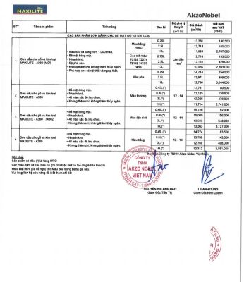 BẢNG GIÁ – SƠN DULUX, MAXILITE MỚI NHẤT